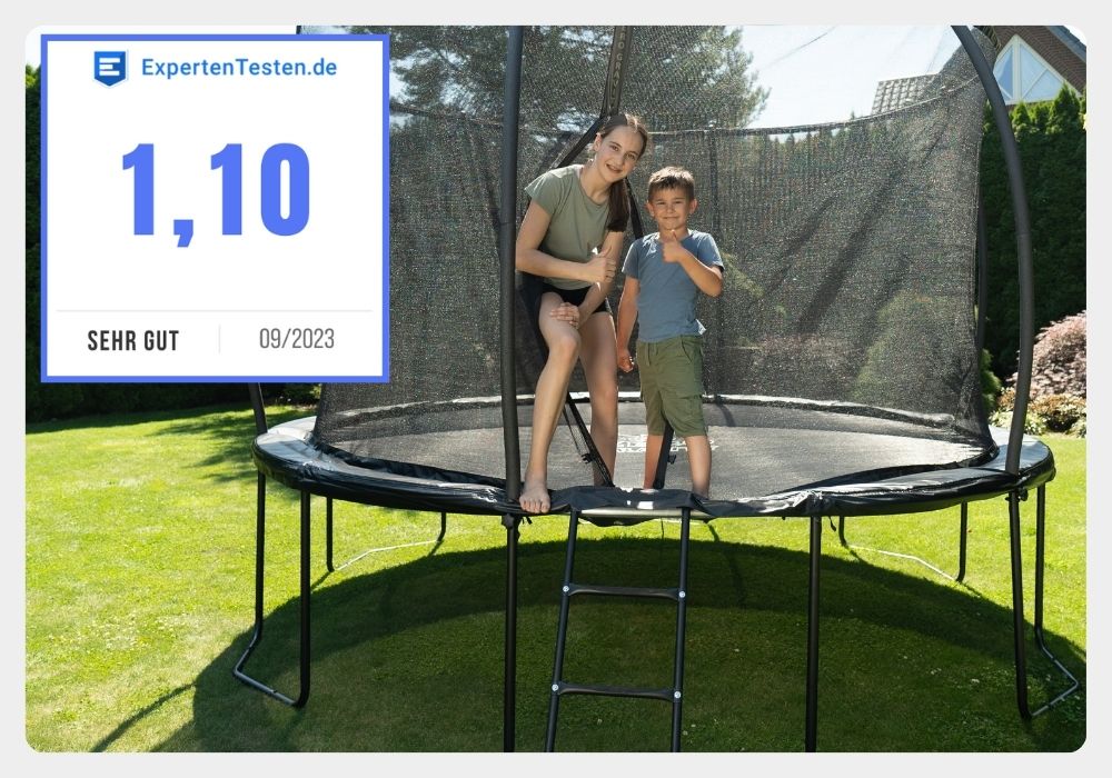 Das Verbraucherportal expertentesten.de hat unser Gartentrampolin 366cm getestet und mit Gartentrampolinen anderer Marken verglichen.