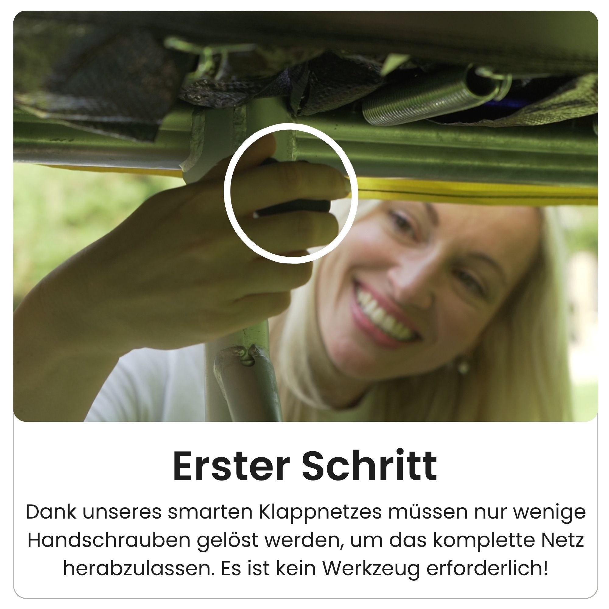 Dank unseres smarten Klappnetzes lässt sich das Sicherheitsnetz in wenigen Minuten absenken. So kann das Trampolin nach jedem Gebrauch schnell und einfach abgedeckt werden und ist immer sauber und sprungbereit.